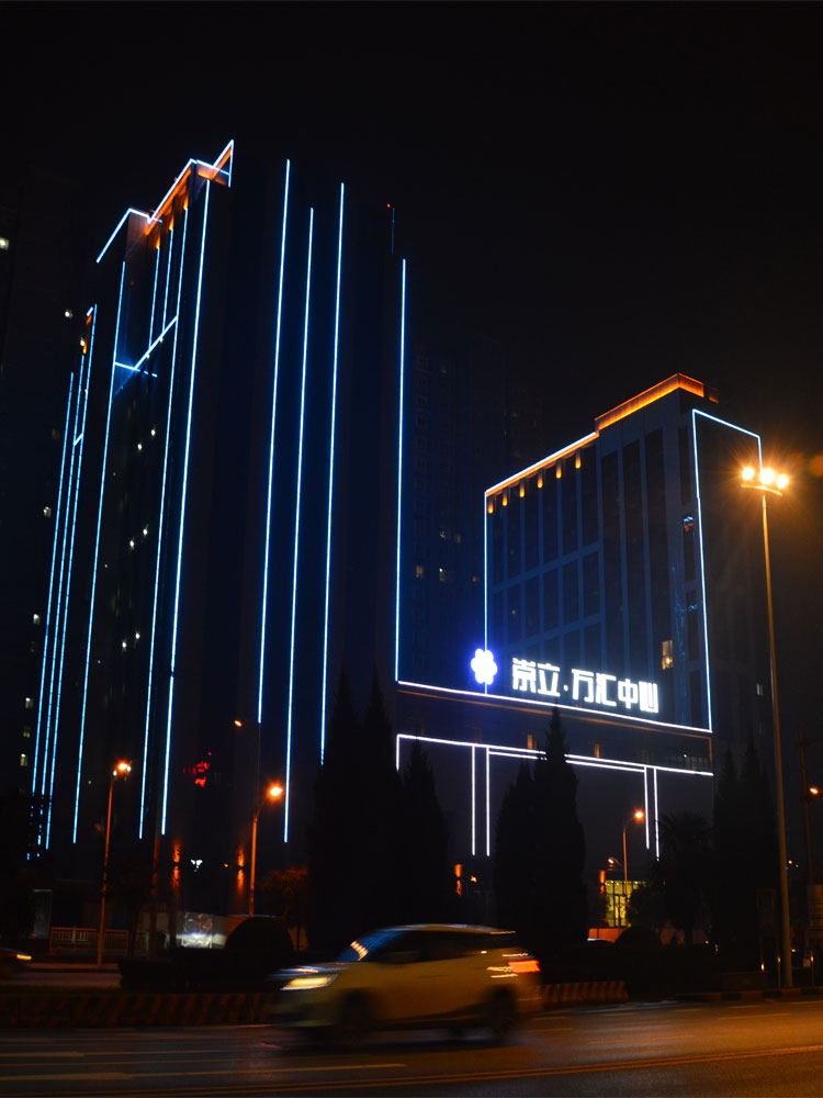 西安金宇藍苑,地理位置優越,我公司亮化設計師著重于該建筑物夜晚的美觀效果。從周圍景觀,樓宇本身的造型及商業部分的用途,外掛幕墻的裝飾性著手,努力將其打造成為該路段的地標性建筑。點亮路人的眼睛,從而為業主帶來非常高的入住率,為商鋪商戶帶來良好的效益。