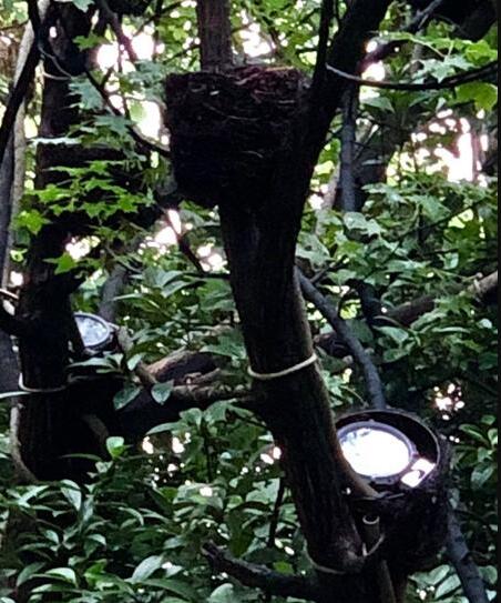 今年三月,公園在進行點亮提升工程初期,增設了很多燈組,到了晚上,不同顏色的燈光交匯在一起,增加了南湖畔的夜景效果,看著漂亮得很。但是白天卻影響公園里的整體美觀,就設計采取了這種以假亂真的辦法,用“鳥巢”把一盞盞景觀燈給包裹起來,與周圍自然環境融為一體,讓住在樓房里的人們來到湖畔休閑納涼時,感受到一種貼近大自然的城市慢生活。沿著南湖一周,在綠化樹上搭建的這種“鳥巢”燈罩總共1萬多